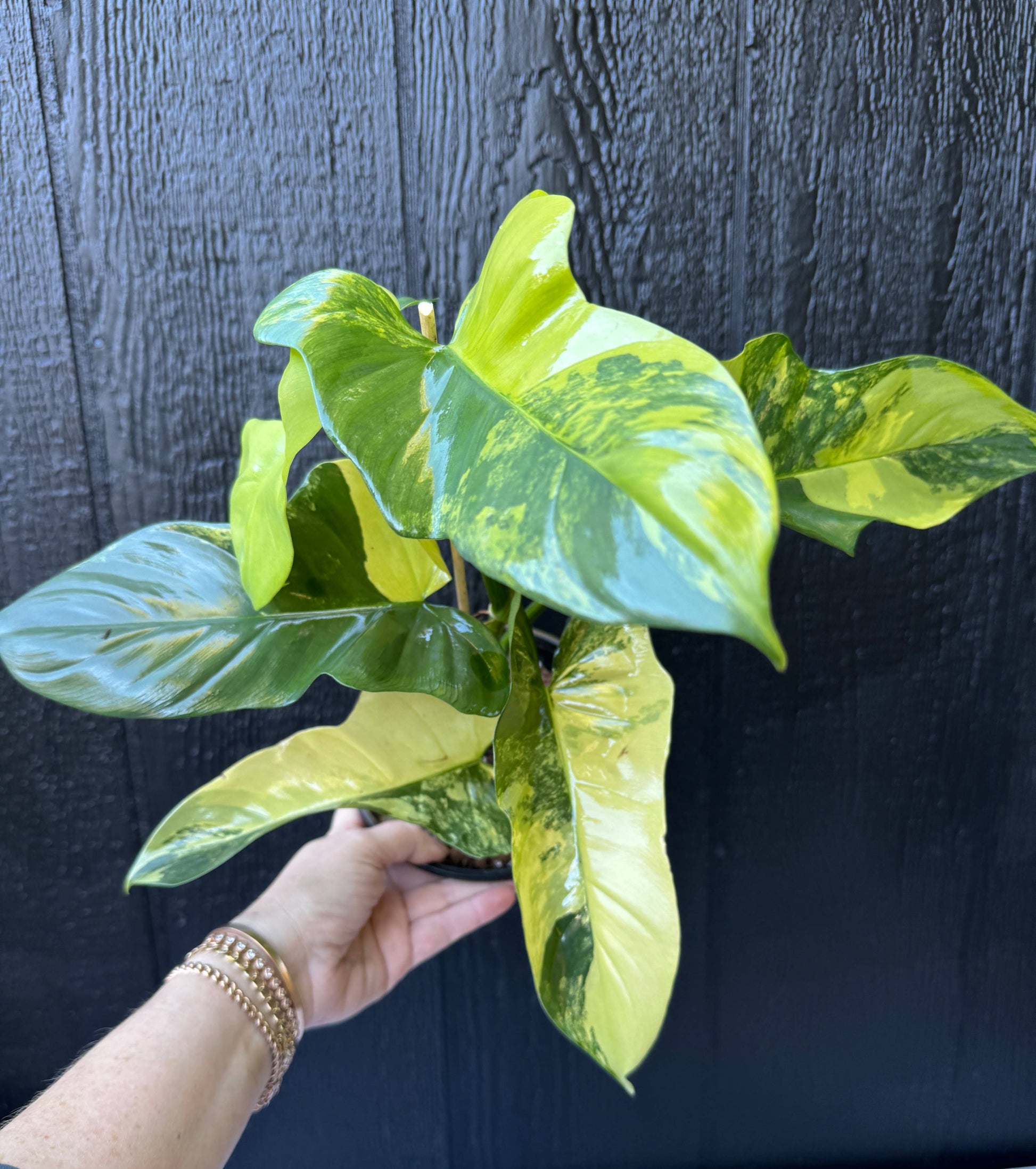 The Variegated Golden Violin Philodendron is an exotic plant that stands out with its unique and stunning variegated foliage. This rare houseplant features large, violin-shaped leaves with bold splashes of creamy white and golden-yellow variegation against a rich green background. The distinct leaf shape, reminiscent of a violin, combined with its striking variegation, makes this philodendron a captivating addition to any plant collection. Native to the tropical rainforests of South America, the Variegated Golden Violin thrives in shaded, humid environments, making it an ideal choice for indoor spaces. Details: Comes in a 6” pot